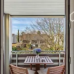 Værelserne på Apartment Close To Vf Tower - 53 Sqm - Fair - Kitchen har udsigt over gaden og har en balkon, et skrivebord, kaffe- og tefaciliteter. Badeværelsesfaciliteter indeholder et badekar og en bruser.